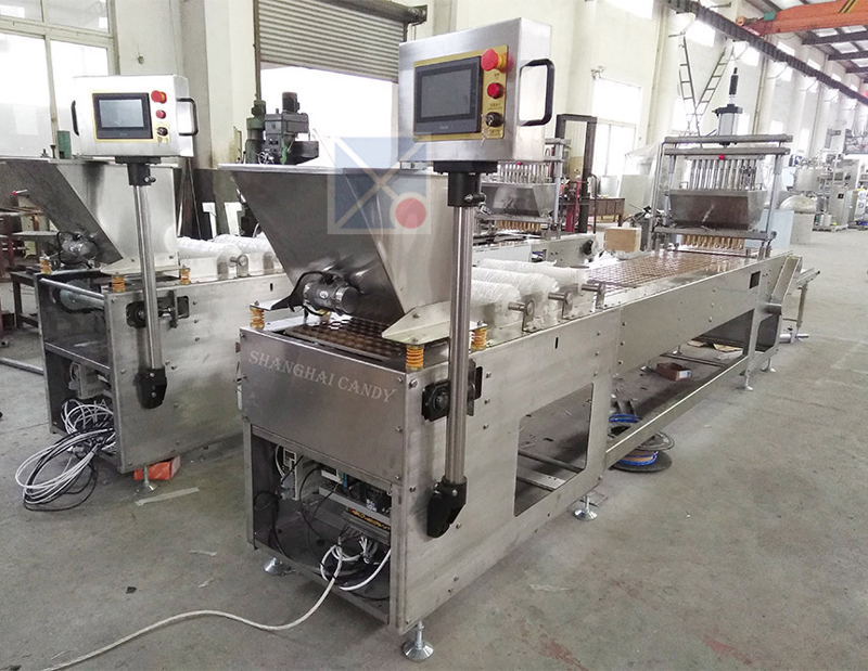 本機(jī)用于向空心餅干注芯液體巧克力,主要由機(jī)架,餅干整理料斗和毛刷,注芯機(jī),模具,輸送,電器箱等組成。全機(jī)采用不銹鋼304組成,整個(gè)生產(chǎn)過程由伺服驅(qū)動(dòng)和PLC系統(tǒng)控制。